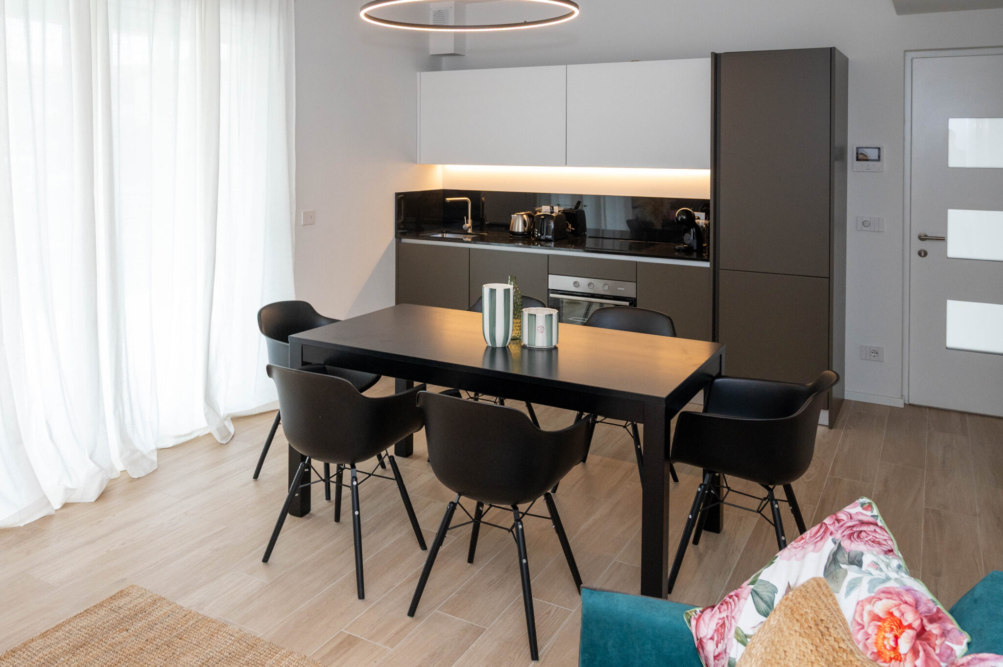 Flower Clock è un’unità di 60 mq caratterizzata da uno stile fresco e accogliente. Dispone di una camera matrimoniale, una camera singola e un divano letto in soggiorno per un totale di 5 posti letto. Completano l’alloggio due bagni di cui uno con doccia, un grazioso giardino privato e un box auto. Presenti due televisioni sia nella cucina/soggiorno che nella camera da letto matrimoniale.